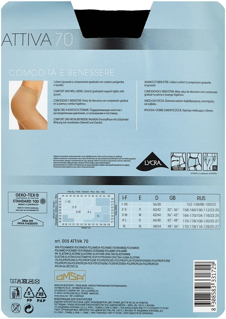 Колготки (OMSA) ATTIVA 70 (nero 5XL)