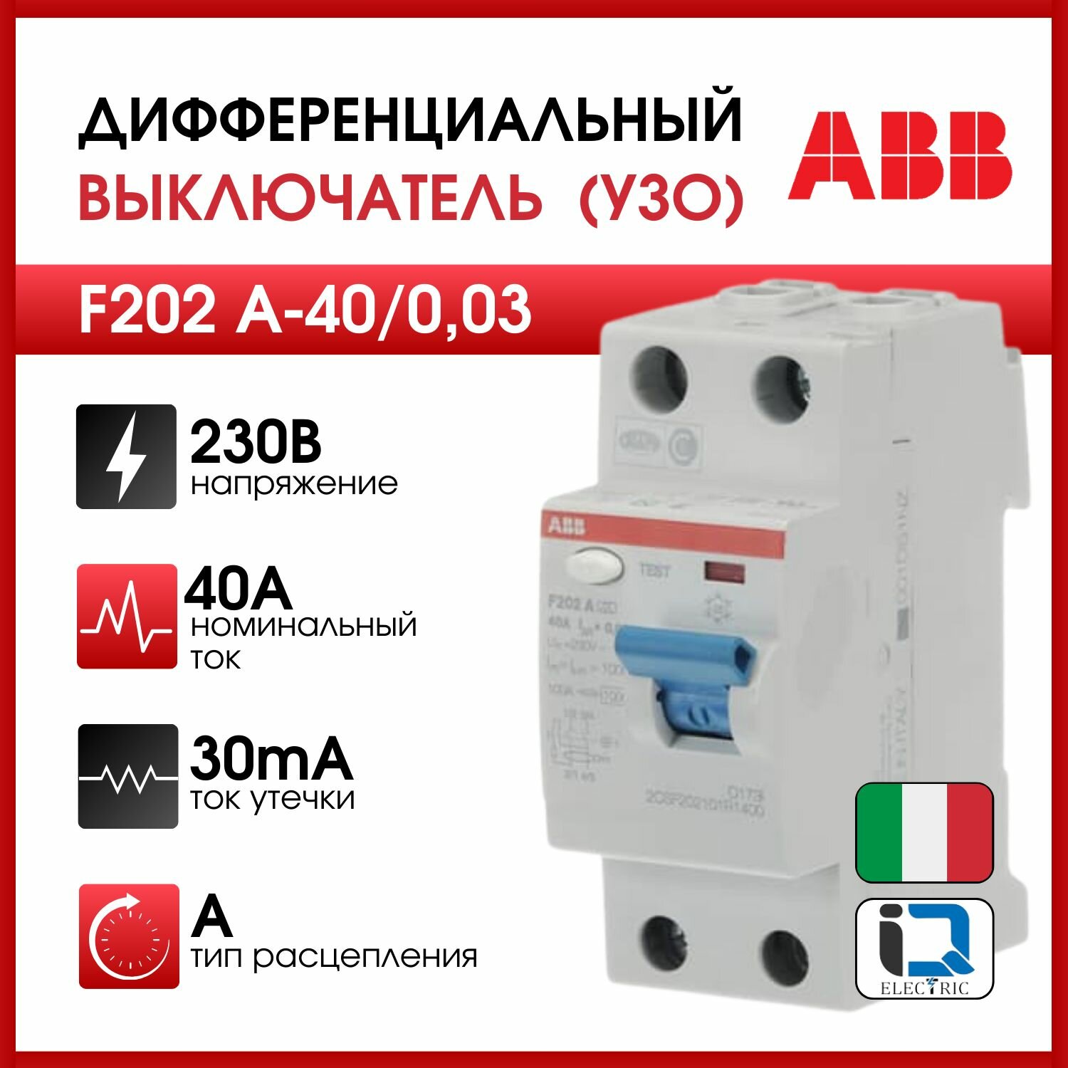 Устройство защитного отключения (УЗО) ABB F202 A-40/0,03 mA, 40A 30mA тип А