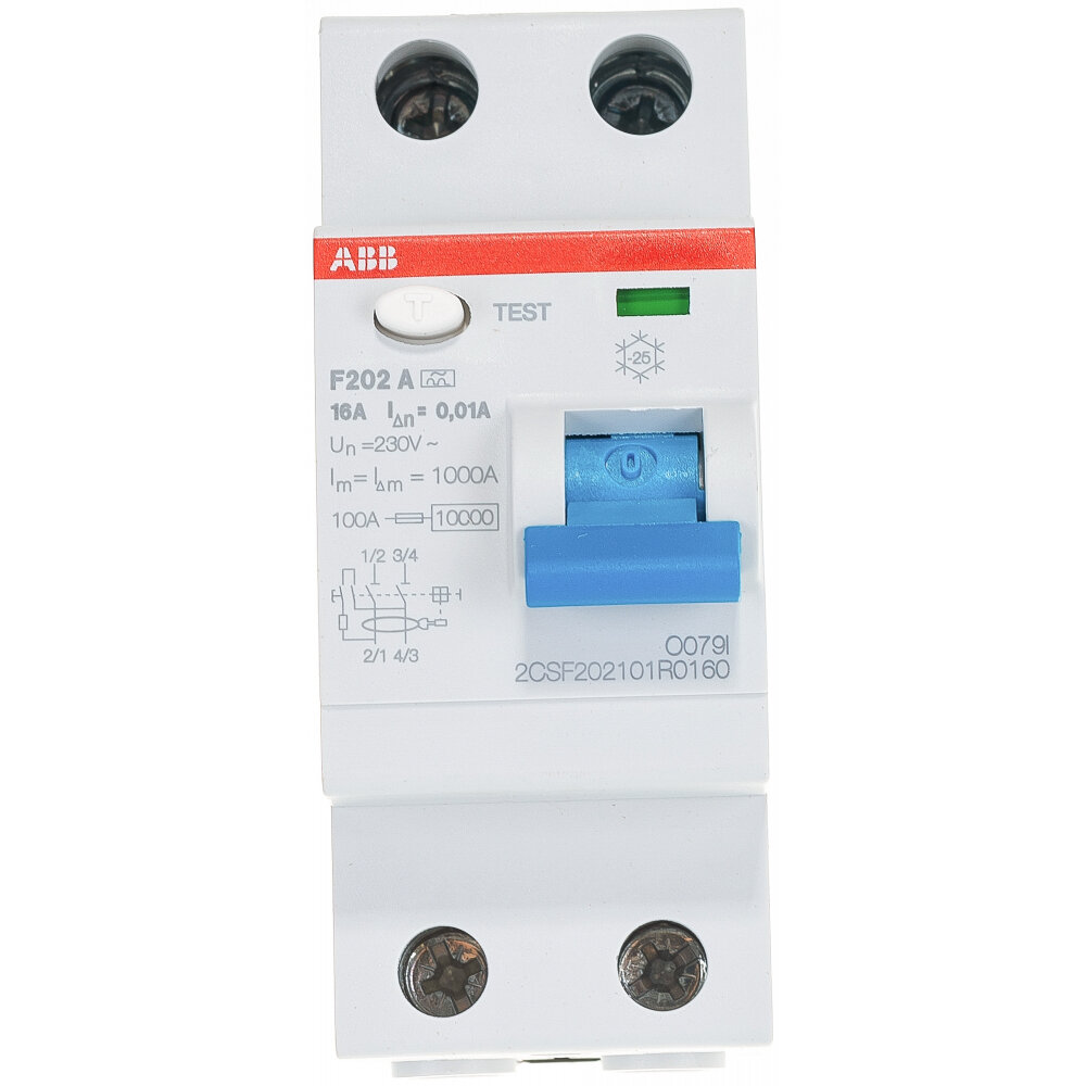 АББ F202 УЗО 2P 63А тип АС 30мА / ABB F202 устройство защитного отключения 2 полюса 63А хар-ка АС 30мА