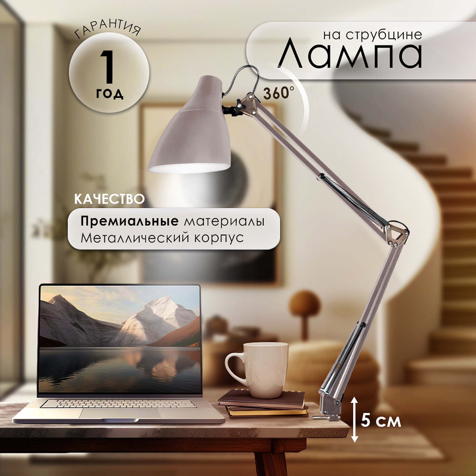Светильник настольный с металлической струбциной Camelion KD-335 тауп .