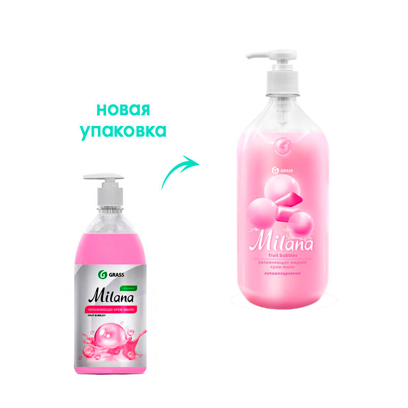 Grass Жидкое крем-мыло Milana Fruit bubbles, 1000 мл, 2 шт