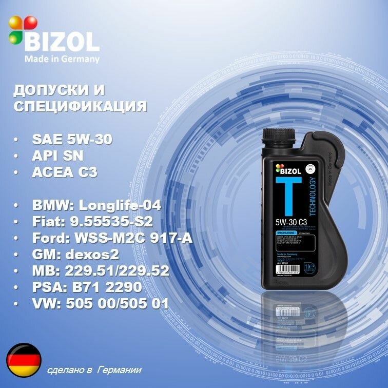 Моторное масло Bizol Technology 5W-30 507 SM C3 НС-синтетическое 1 л Сделано в Германии 85820 Bizo .