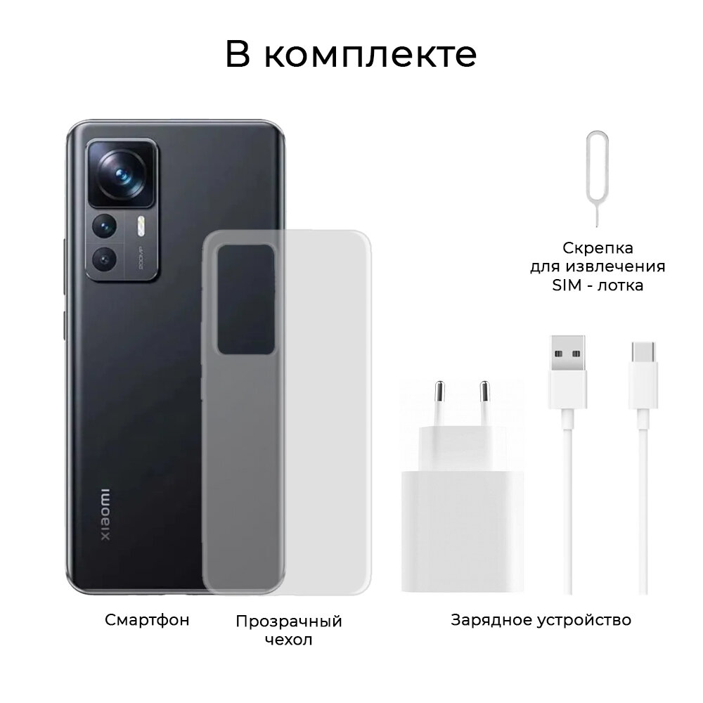 | Комплектация | смартфон Xiaomi 12T Pro, адаптер питания, кабель USB Type-C, инструмент для извлечения SIM-карты, защитный чехол, руководство пользователя, гарантийный талон |