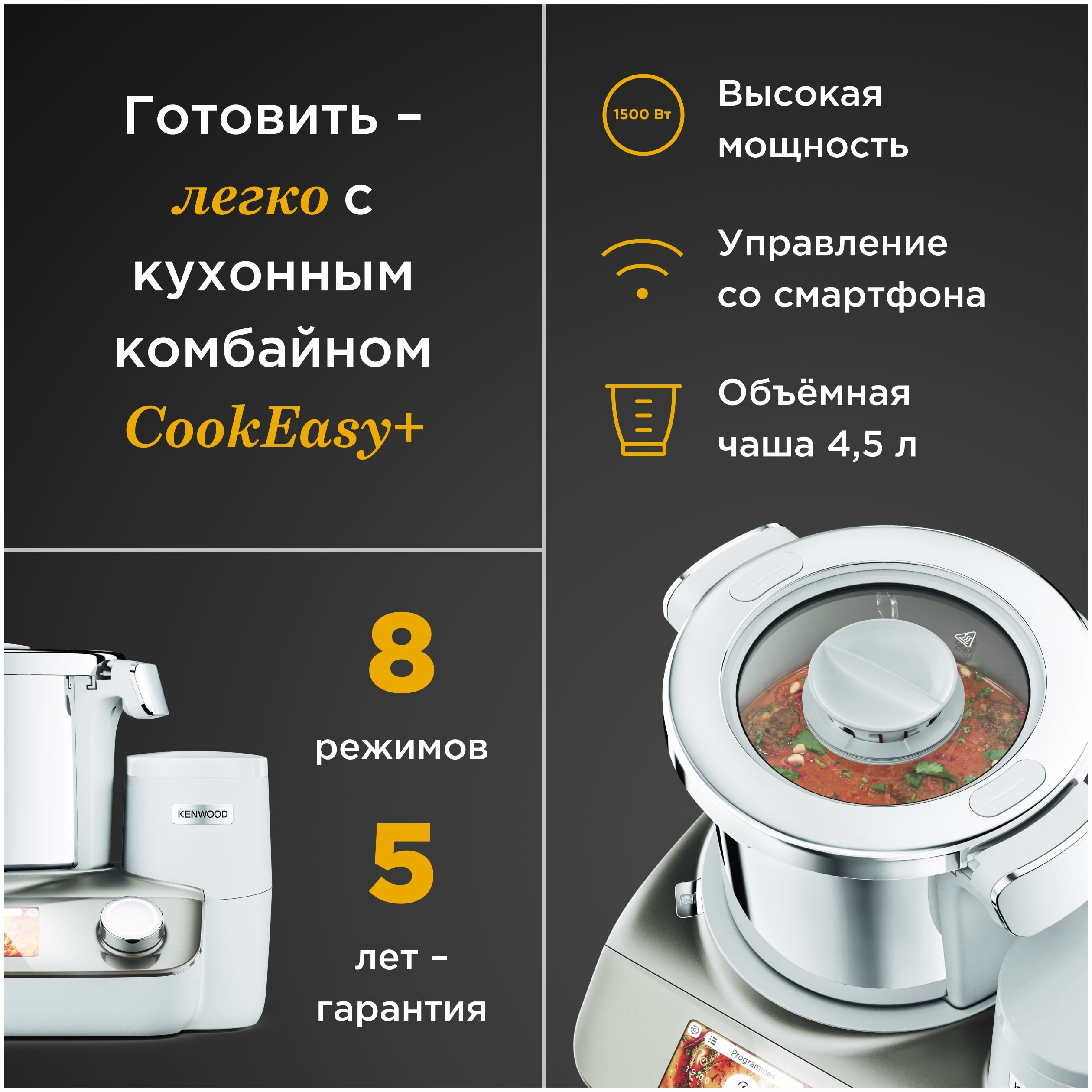 CookEasy в пользовании больше года. Я много готовлю и готовлю очень разные блюда: повседневные и те, для которых нужен повод, десерты и су-вид (для этой технологии машина очень удачна в бытовом использовании). Готовлю и делюсь этими рецептами - на CookEasy уже есть несколько видеорецептов, но, конечно, надо больше;) Вот, что я готовил на машинке из недавнего: рагу, куриную грудку су вид, крем суп, том ям, ризотто, паштет, мармелад, заварной крем, сбивал фруктовую пенку, готовил манты на пару. Это за последний месяц:) Причем, если у вас большая семья, то можно приготовить сразу в больших объемах - чаша на 4,5 литра и пароварка удобная! Особенности CookEasy и преимущества перед аналогами: - Индукционный нагрев до 180 градусов + температура выставляется четко. В аналогах возможности нагрева значительно меньше - в них нельзя выставлять высокую температуру в ручном режиме и шаг идет не такой точный. - Терка-ломтерезка с 5 вариантами дисков, все основные вопросы с нарезкой закрывает:) Нашинковать, нарезать, сделать это в чашу, где уже греется масло, или нарезать салат в сторону от нее, пока машина готовит суп - все можно! - Сменные насадки-ножи для чаши и заглушка для максимальной рабочей поверхности, когда не нужно помешивание - супер решение Kenwood, которое давно напрашивалось. - Пароварка. Очень удачная двухъярусная, широкая. Пластиковая, но смотрится неплохо и в использовании комфортная! - Экран сенсорный, срабатывает, даже если тыкать жирными пальцами. Но "вслепую", как с механическим управлением, уже не поработать - нужно именно смотреть куда нажимаешь. - Предустановленные программы и рецепты в приложении Kenwood World, но ни одним так и не пользовался, так как часто попадались не до конца проработанные (и под вкусы европейцев) Еще возможность получения подарков к заказу и бонус от онлайн школы при покупке с промокодом:) Если есть какие-то вопросы по машине - рад подсказать! |
