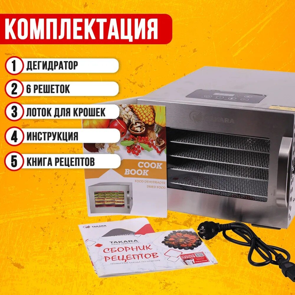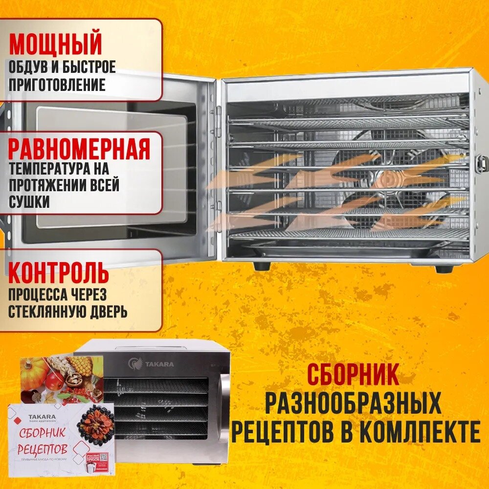 Сушилка для овощей и фруктов TAKARA DF-06 из нержавеющей стали, Дегидратор для сушки электрический,Гарантия до 3 лет интересное: