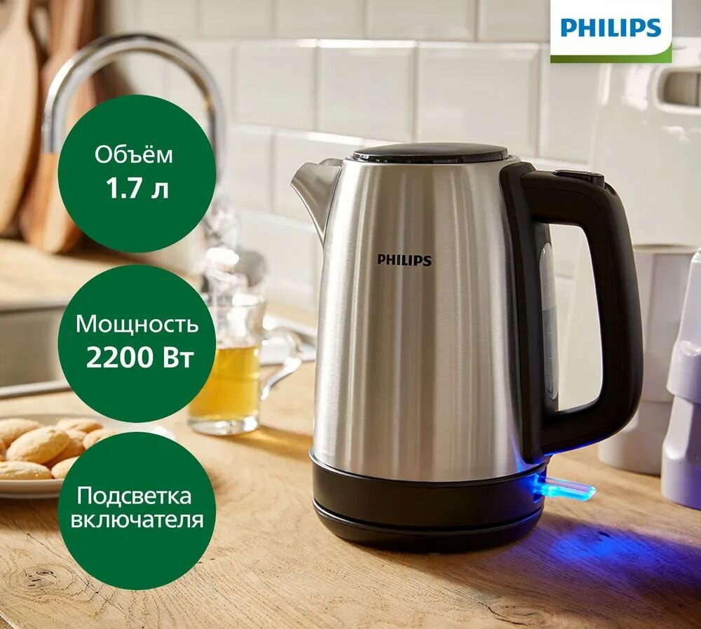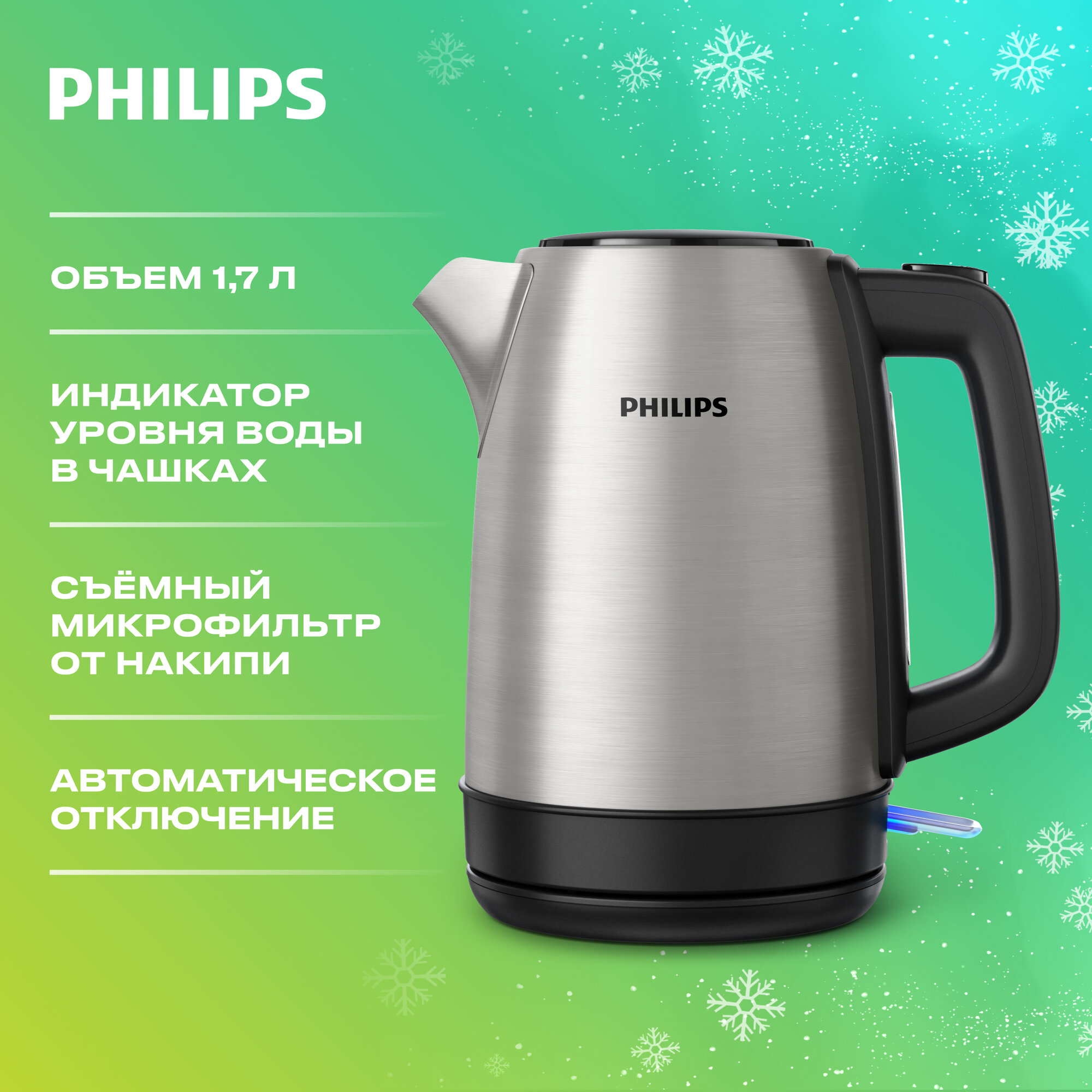 Чайник Philips HD9350/90, 1,7 л, 2200 Вт, световой индикатор, функция автовыключения, индикатор уровня воды
