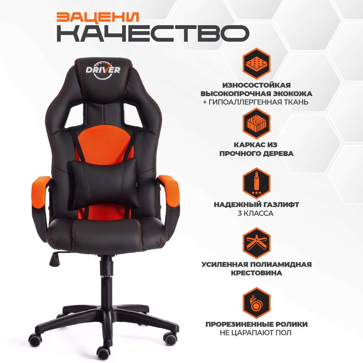 TetChair Кресло компьютерное DRIVER 22 экокожа+ткань, черный / оранжевый