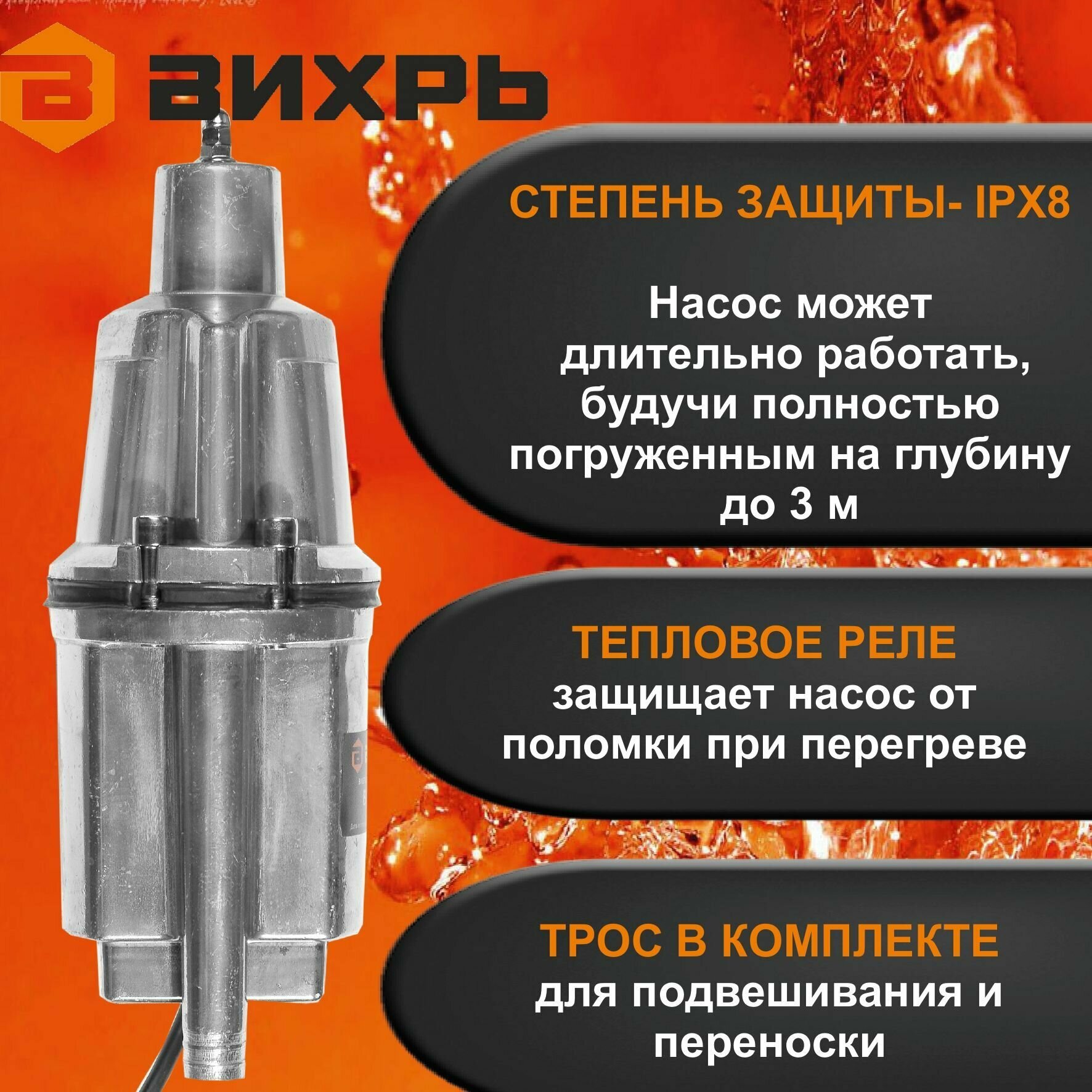 Насос погружной Вихрь ВН-1080Н с нижним забором воды / кабель 10 м / вибрационный садовый Ручеек