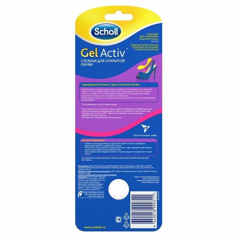 Стельки Scholl (Шолл) GelActiv для открытой обуви
