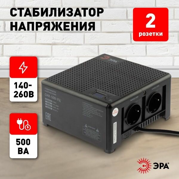 Эра Б0051109 Стабилизатор напряжения СНК-500-УЦ компактный универсальный, 140-260В 220В, 500ВА