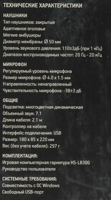 | Дополнительная информация | многоцветная динамическая подсветка; виртуальный объемный звук 7.1; управление звуком и подсветкой на проводе; адаптивное оголовье |