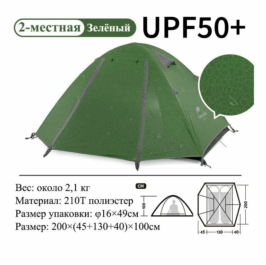 Палатка Naturehike 2022 P-Series Aluminum Pole Tent With New Material 210T65D Embossed Design 2 Man Forest Green