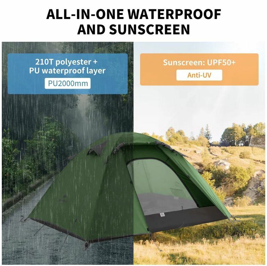 СохранитьПалатка Naturehike P-Series NH18Z022-P 210T/65D двухместная, зеленая 2, 6927595762622 интересное: