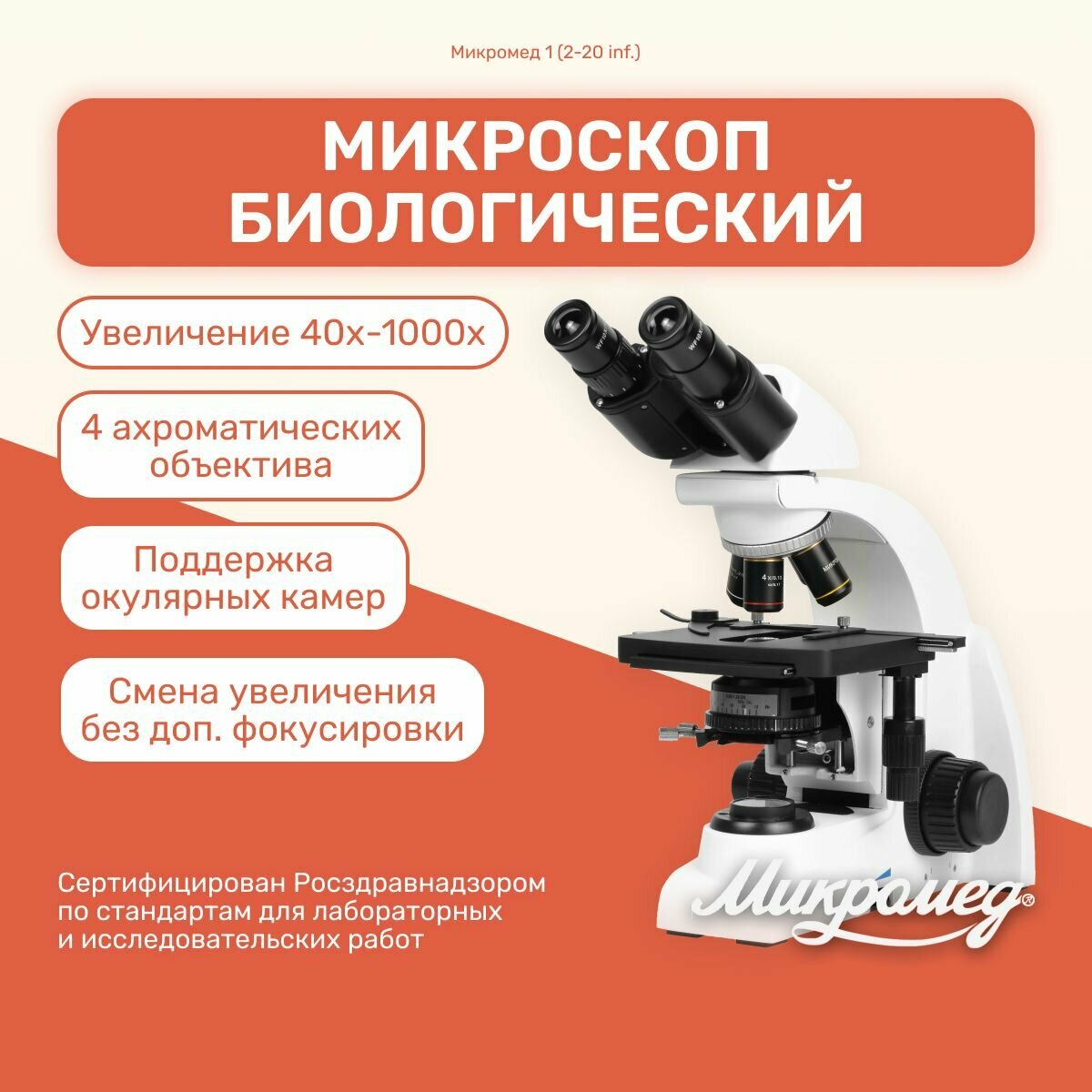 Микроскоп биологический Микромед 1 (2-20 inf.) лабораторный для исследований, профессиональный, металлический интересное:
