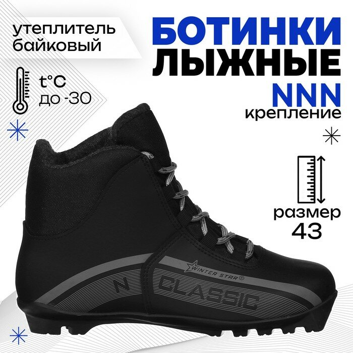 Купить Ботинки лыжные Winter Star classic, NNN, р. 43, цвет чёрный, лого серый