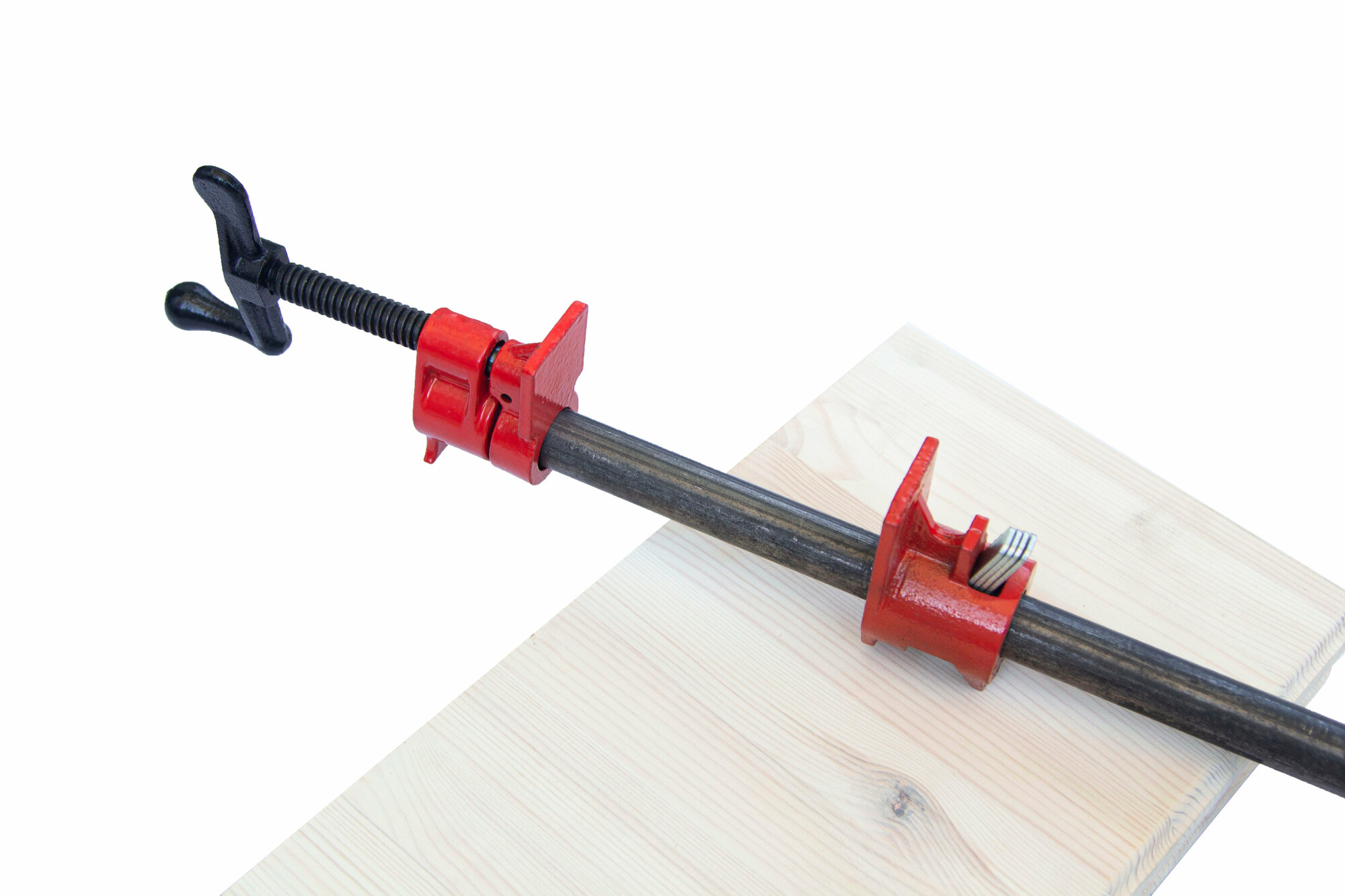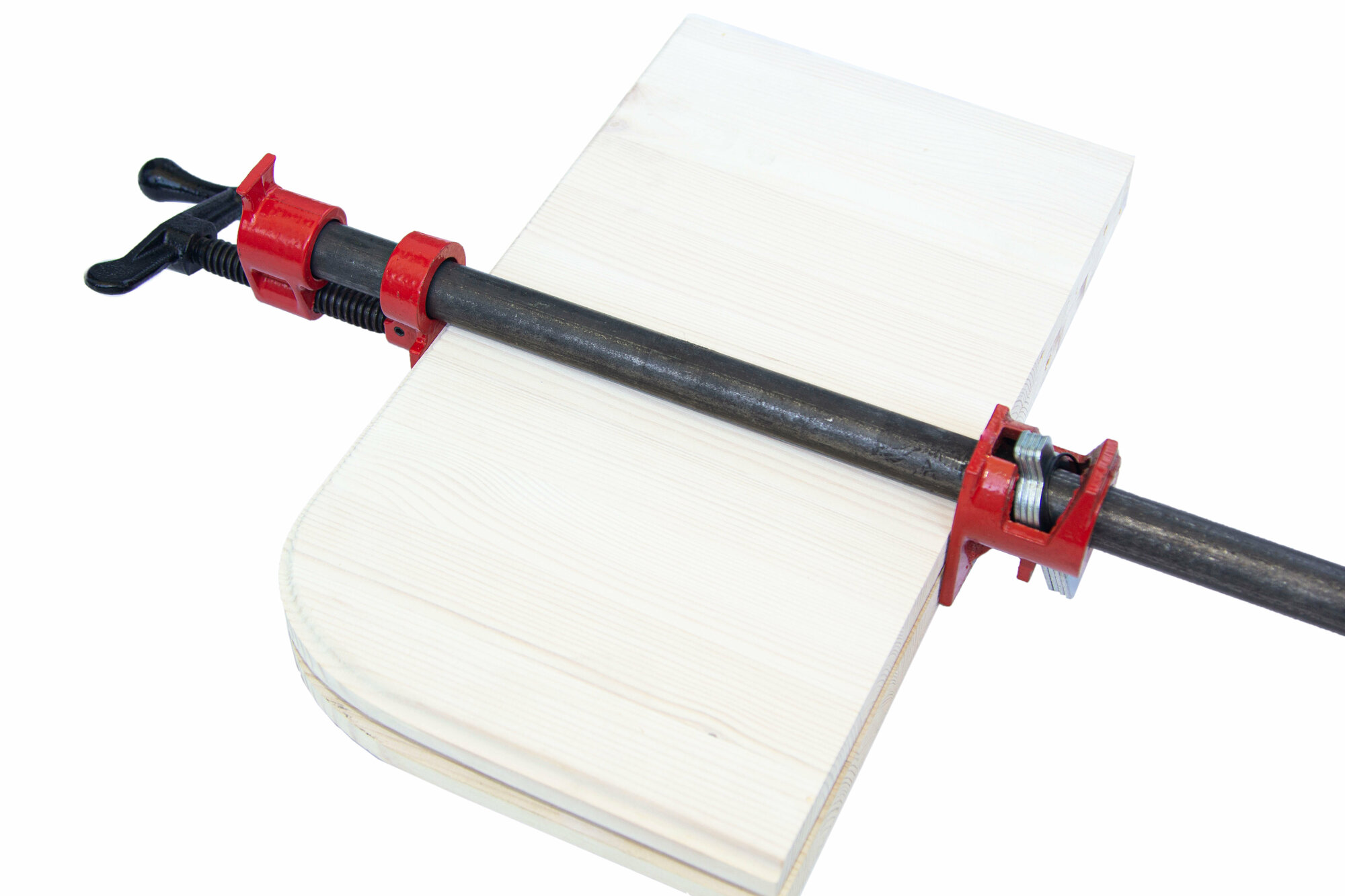 Для использования нужна толстостенная стальная труба с резьбой на одном конце, чтобы зафиксировать неподвижный прижим. |