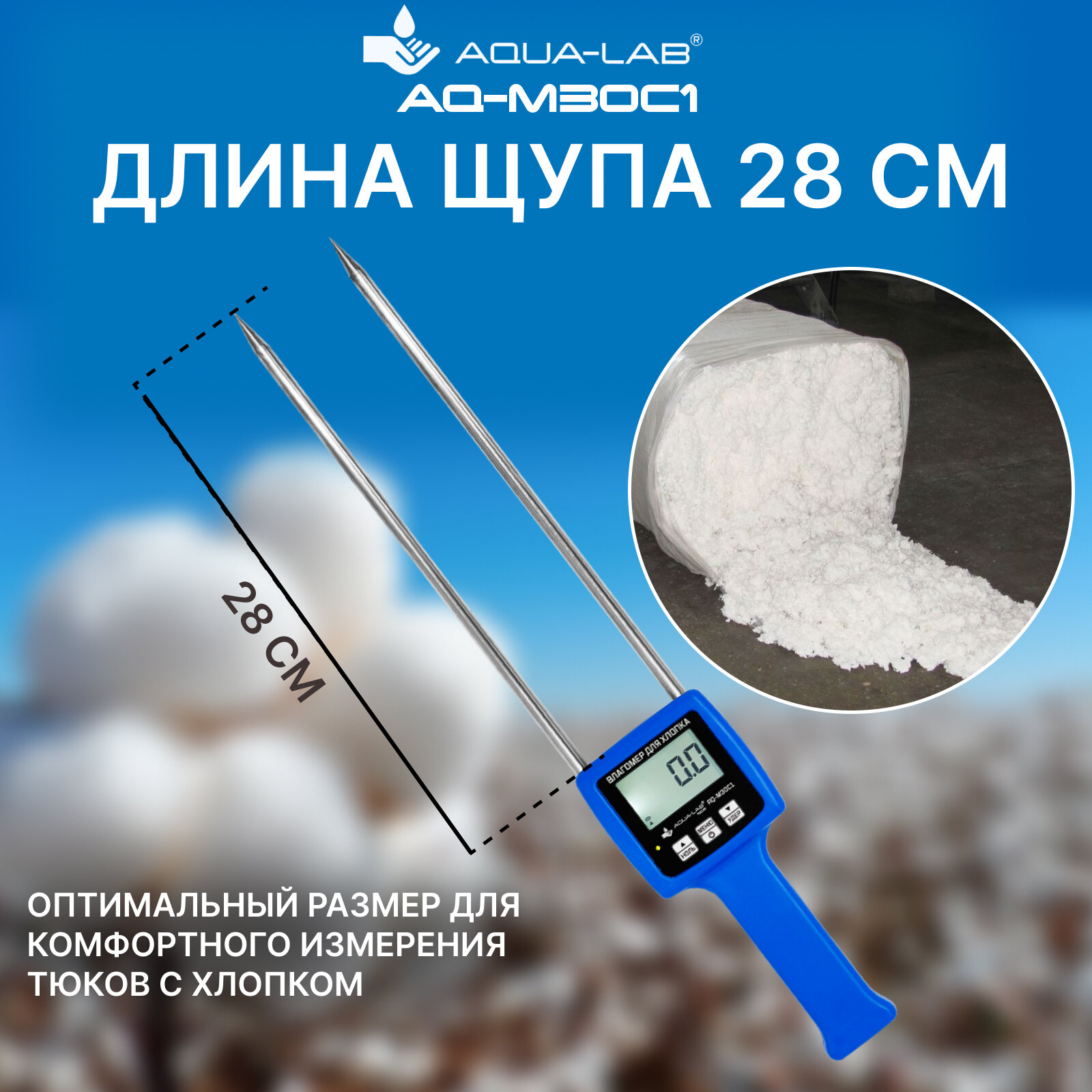 AQUA-LAB AQ-M30C1 Влагомер для измерения влажности хлопка и хлопкового волокна интересное: