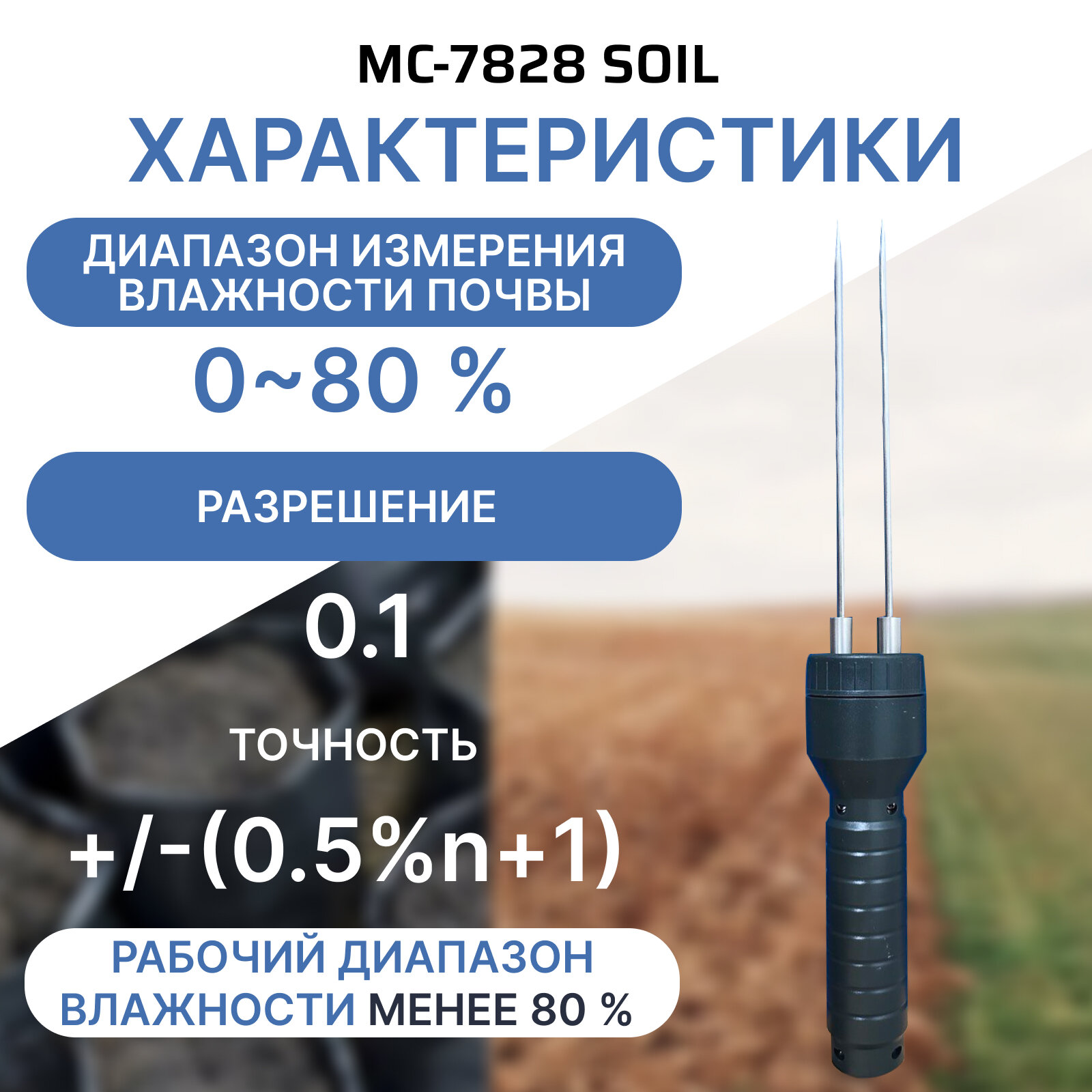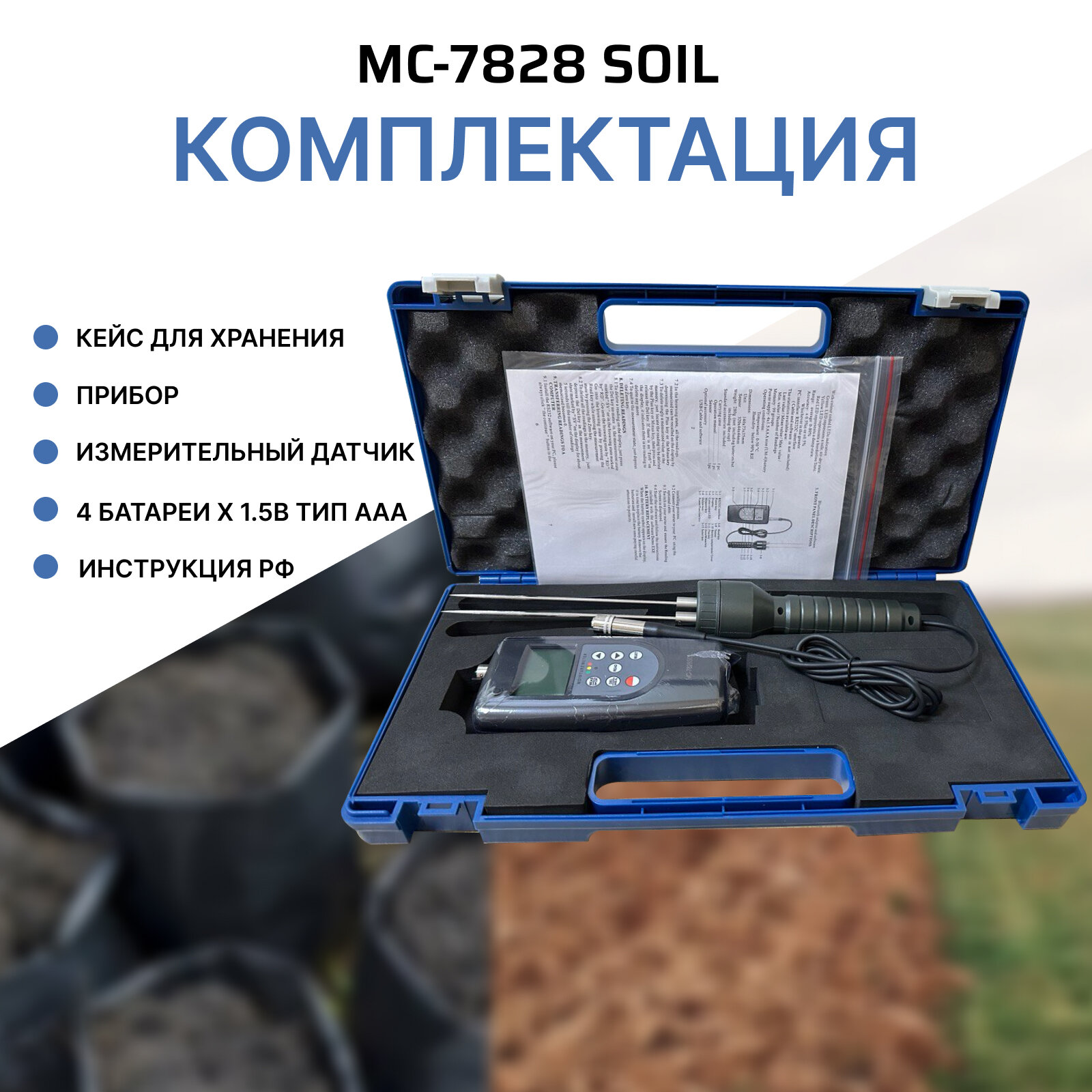 Профессиональный измеритель влажности почвы влагомер Landtek MC-7828 SOIL интересное: