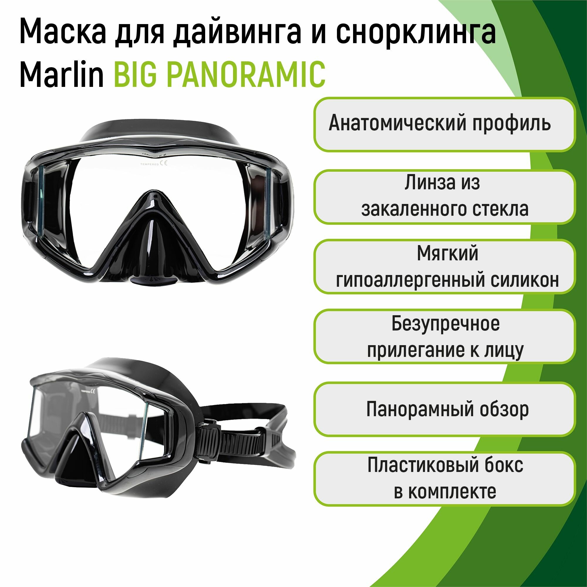 Маска для дайвинга Marlin BIG PANORAMIC BLACK интересное: