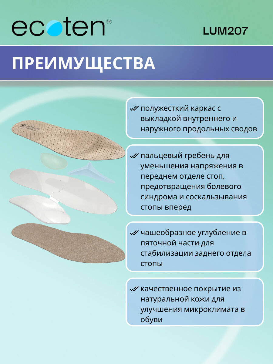 Стельки ортопедические для открытой и модельной обуви LUM-207, Размер 41