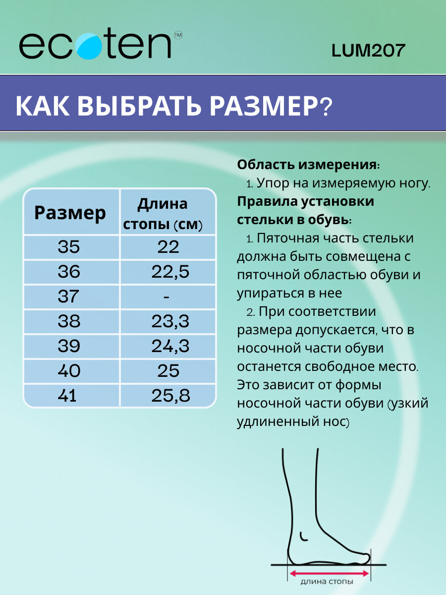 Стельки ортопедические для открытой и модельной обуви LUM-207, Размер 40