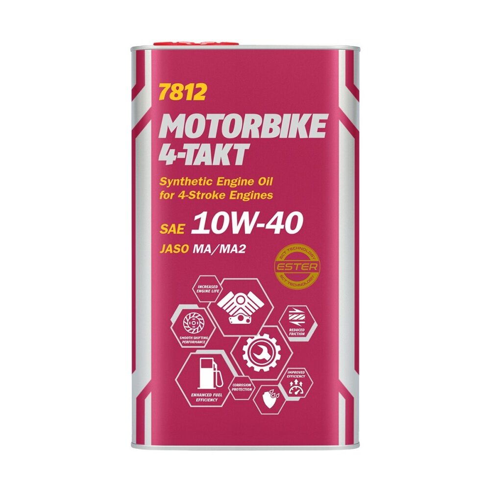 Синт. моторное масло для мотоциклов MANNOL 7812 4-Takt Motorbike Ester 10W40 (1л.) metal