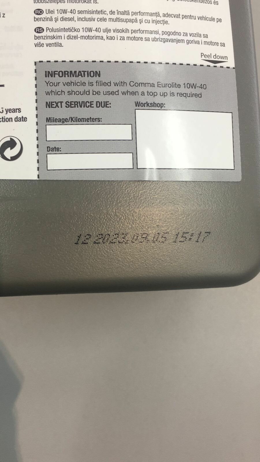 COMMA EUL5L COMMA 10W40 EUROLITE (5L)_масо мотор.! поусин.\ ACEA A3/B4, API SN/CF, MB 229.1, VW 501.01/505.00