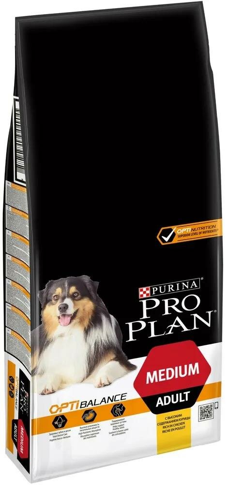 Сухой корм Pro Plan для взрослых собак средних пород с комплексом OPTIBALANCE с высоким содержанием курицы, Пакет, 14кг