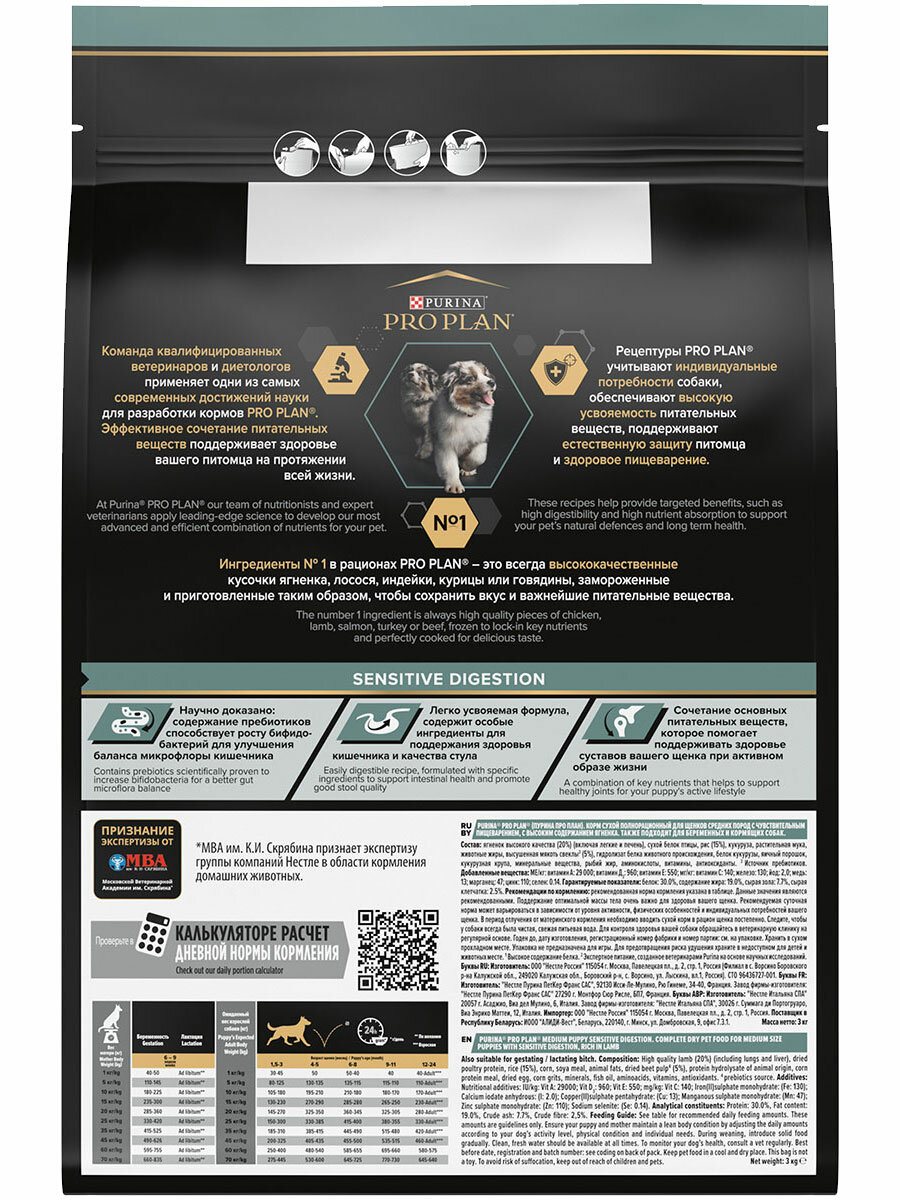 PRO PLAN Puppy Medium Sensitive Digestion сухой корм для щенков средних пород с чувствительным пищеварением с ягненком и рисом 3кг