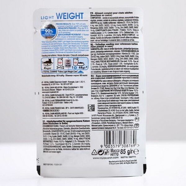 Влажный корм для кошек Royal Canin Light Weight, профилактика избыточного веса 85 г (кусочки в соусе)