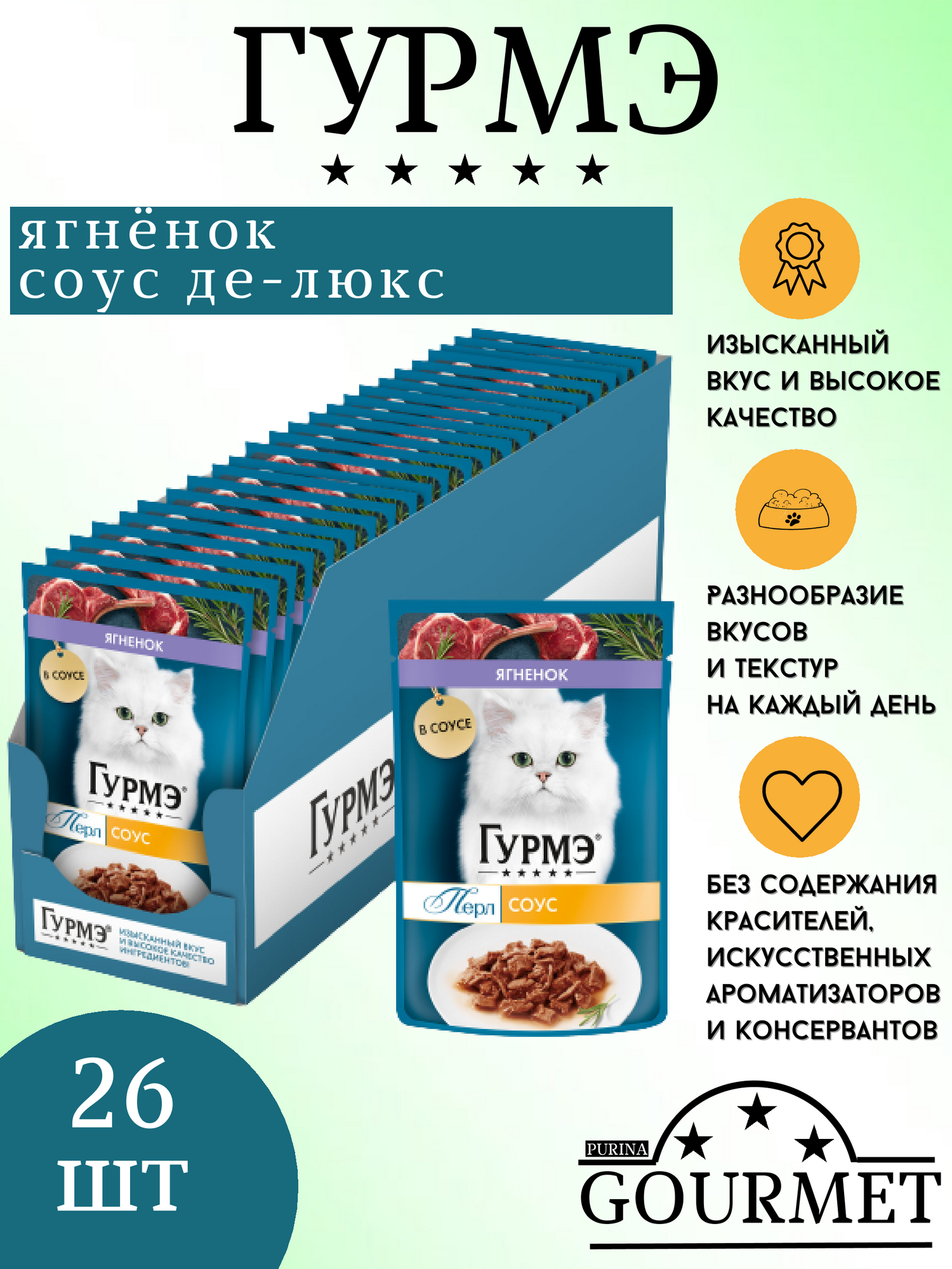 Влажный корм для кошек Gourmet Перл, с ягненком 26 шт. х 75 г (кусочки в соусе)
