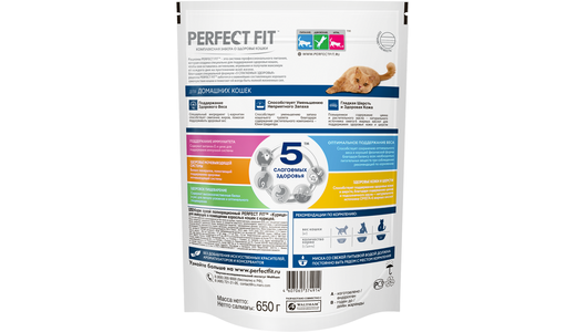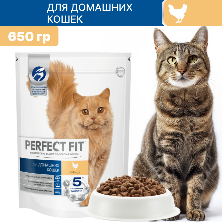 Сухой корм Perfect Fit для домашних кошек, курица, 650 г