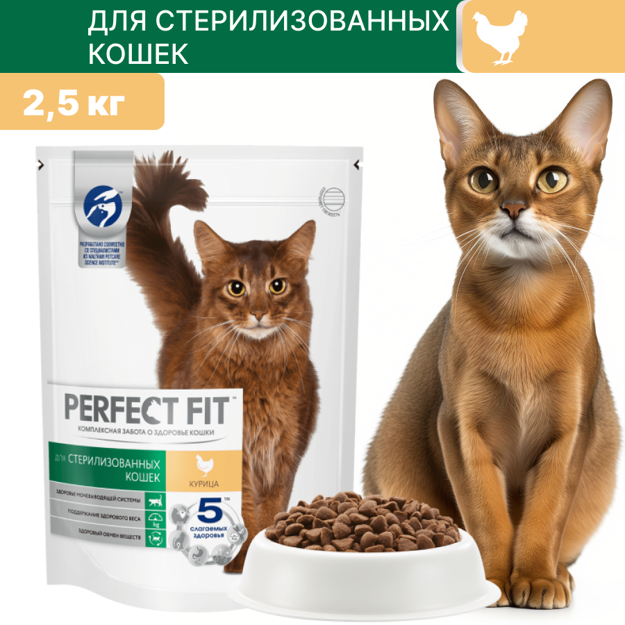 Perfect Fit корм для взрослых стерилизованных кошек всех пород, курица 2,5 кг