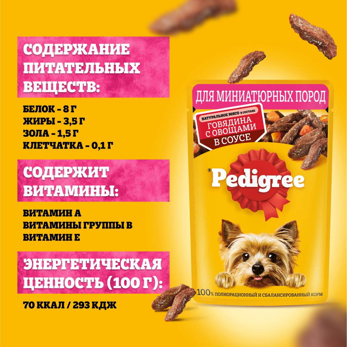 Влажный корм Pedigree для взрослых собак миниатюрных пород, паштет с говядиной, 80г х 24шт