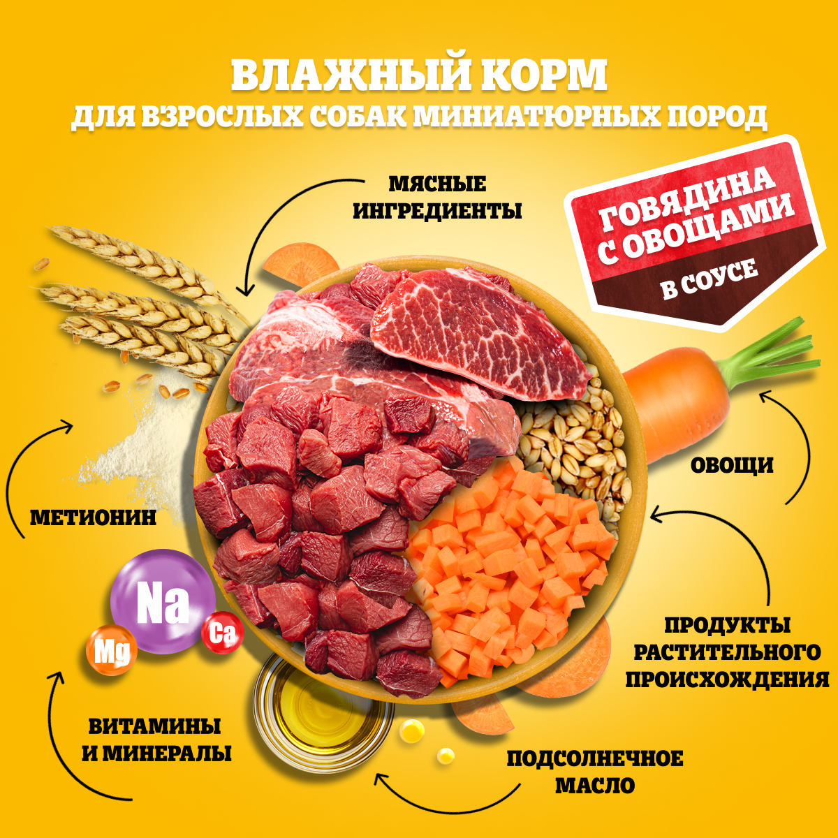 Влажный корм Pedigree паштет с говядиной для взрослых собак миниатюрных пород 80 г