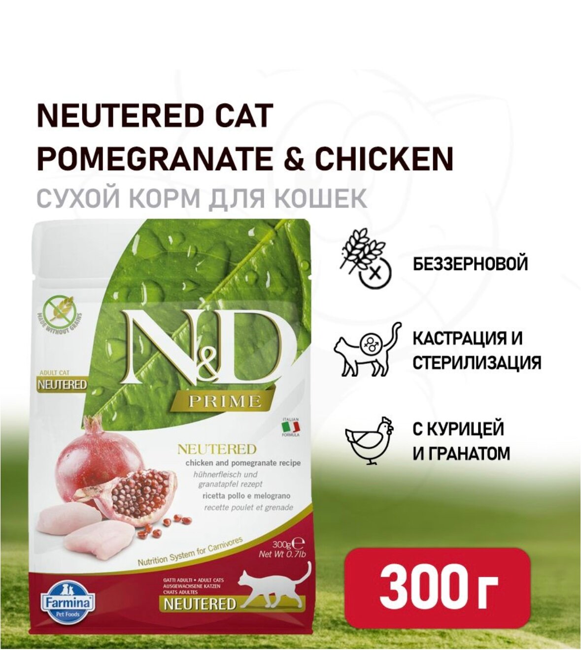 N&D Cat Prime Neutered c курицей и гранатом беззерновой сухой корм для стерилизованных кошек и кастрированных котов 0,3кг