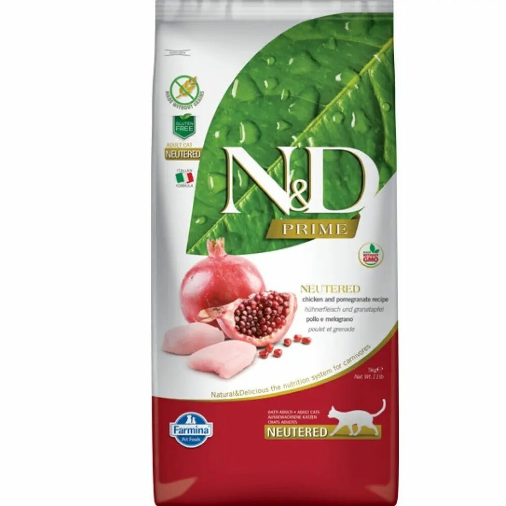 Farmina N&D Cat Prime Chicken&Pomegranate Neutered корм для стерилизованных кошек и котов Цыпленок и гранат, 5 кг.