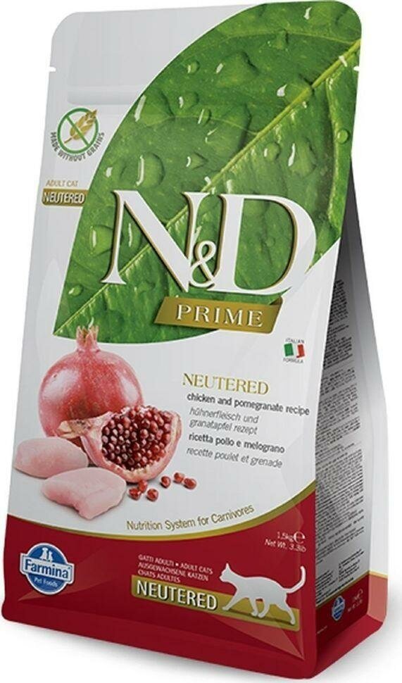 Корм для кошек FARMINA N&D Prime Line для кастрированных, курица с гранатом сух. 1,5кг