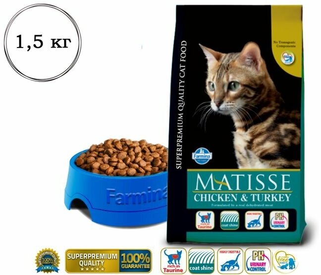 Сухой корм для кошек Farmina Matisse, с курицей, с индейкой 1.5 кг