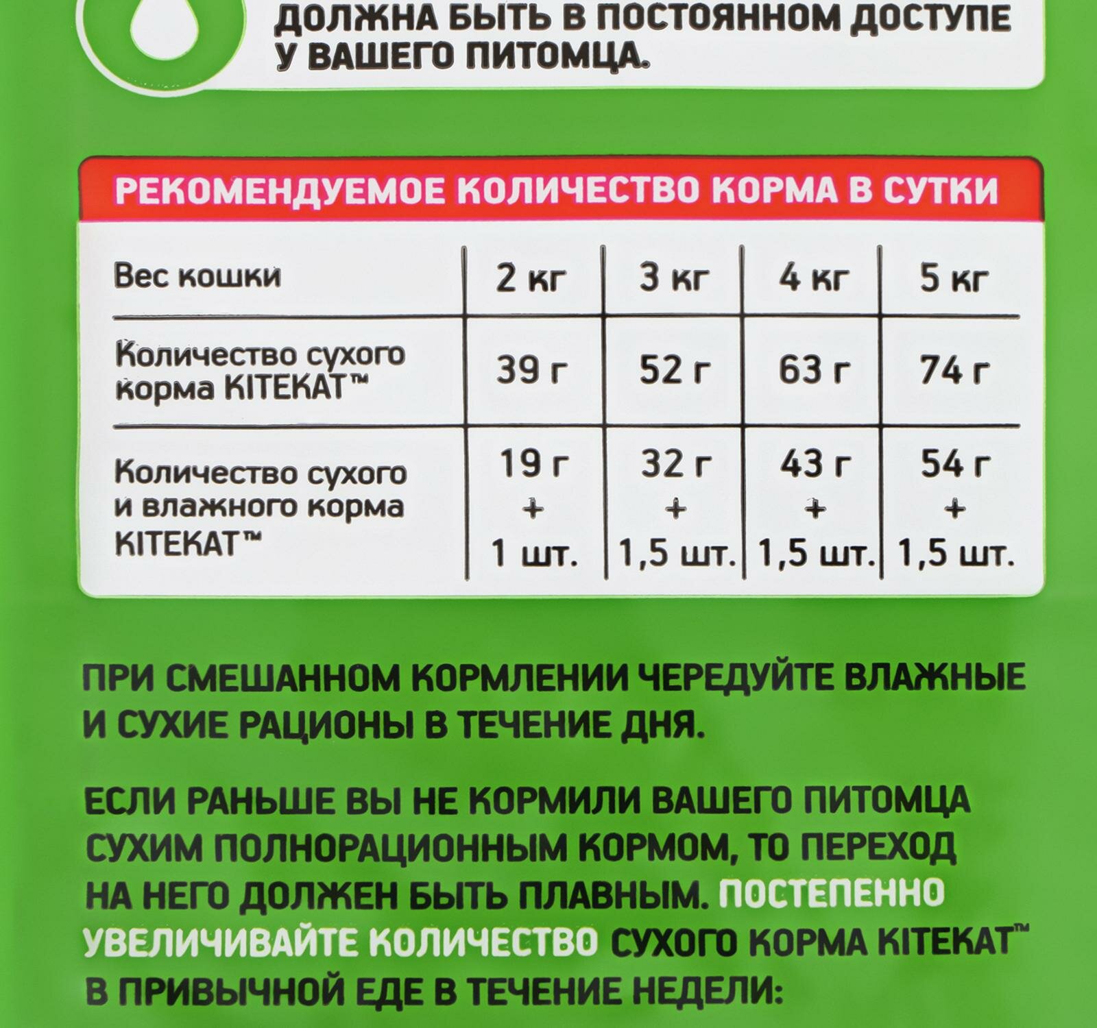 | Дозировка | - вес кошки 2 кг – 39 г; - вес кошки 3 кг – 52 г; - вес кошки 4 кг – 63 г; - вес кошки 5 кг – 74 г |