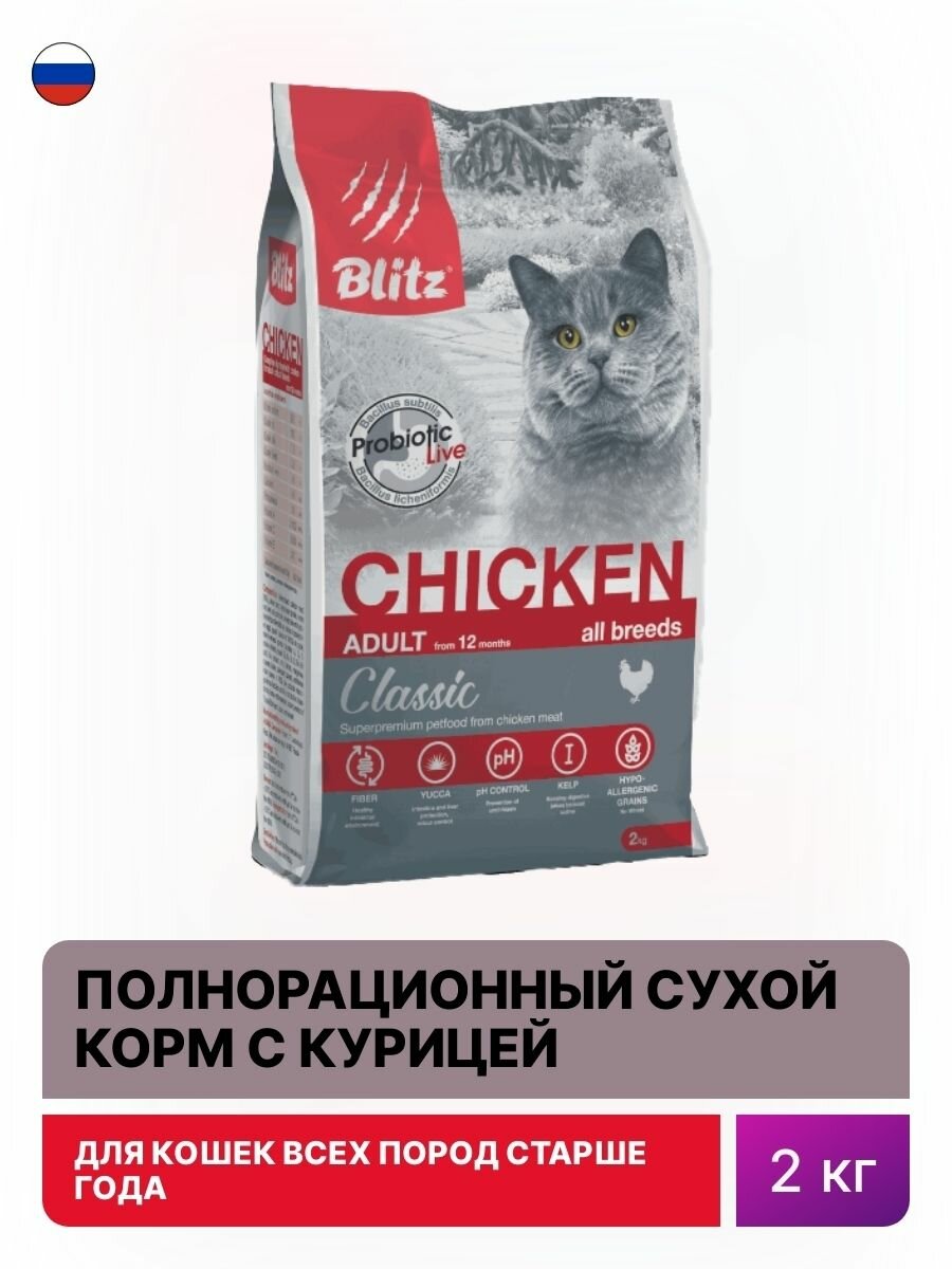 BLITZ CLASSIC ADULT CAT CHICKEN для взрослых кошек с курицей (2 кг)