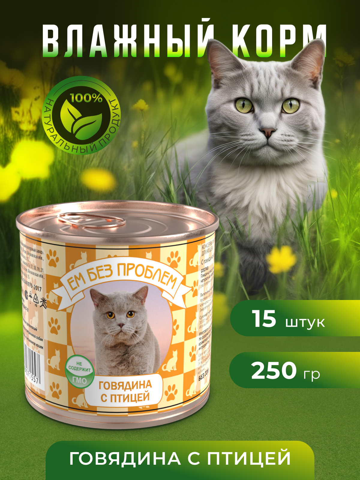 Ем без проблем Консервированный корм для кошек Говядина с птицей, 250 г