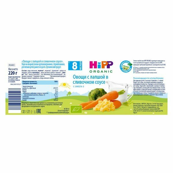 HIPP Пюре Овощи с Лапшой в Сливочном Соусе с 8 мес, 220г интересное: