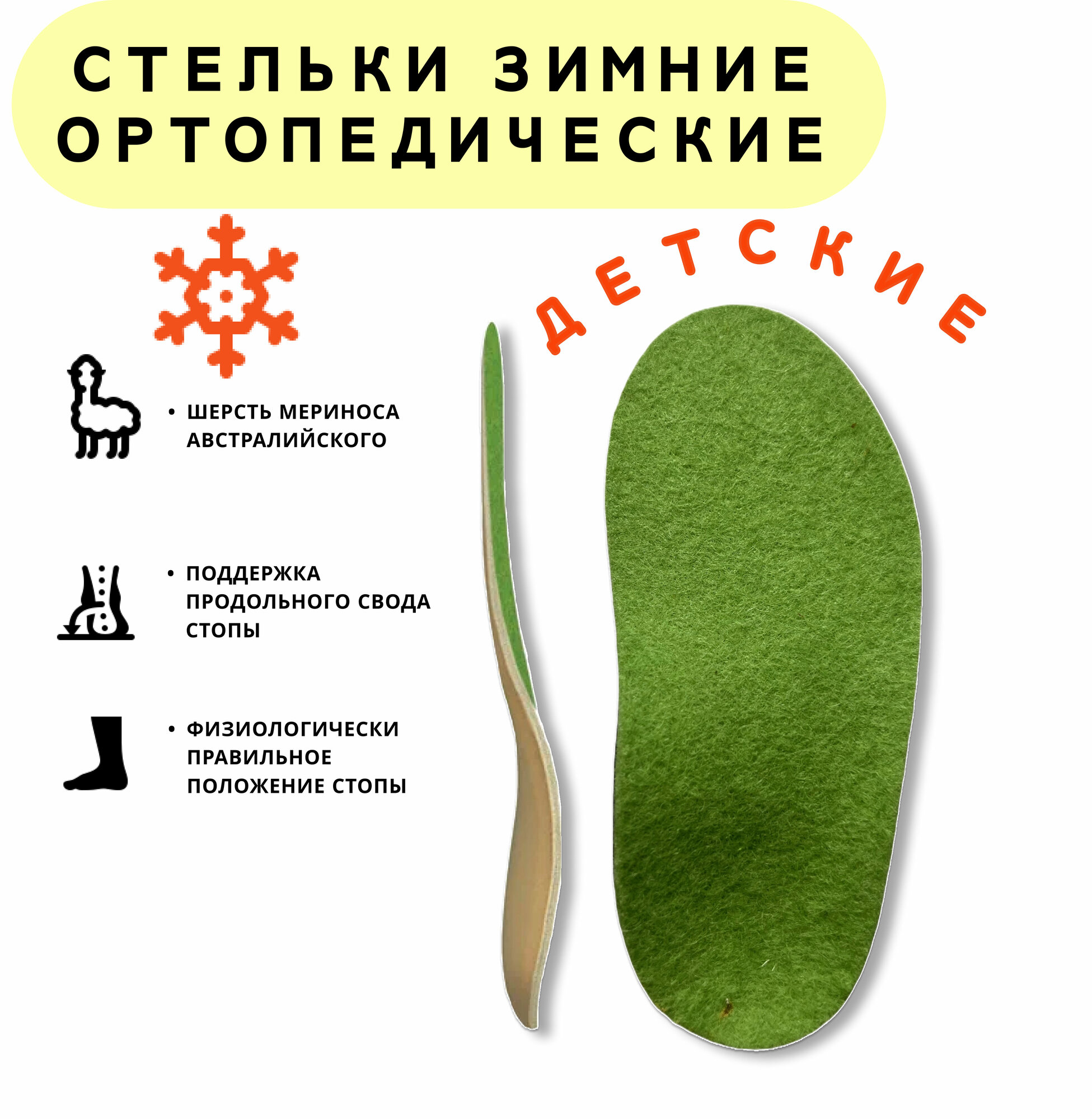 Стельки детские ортопедические каркасные "Lama baby", войлок, зеленый, арт. Lum 500T, 21