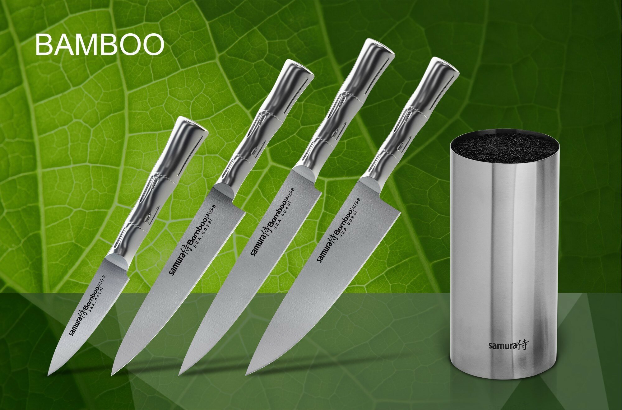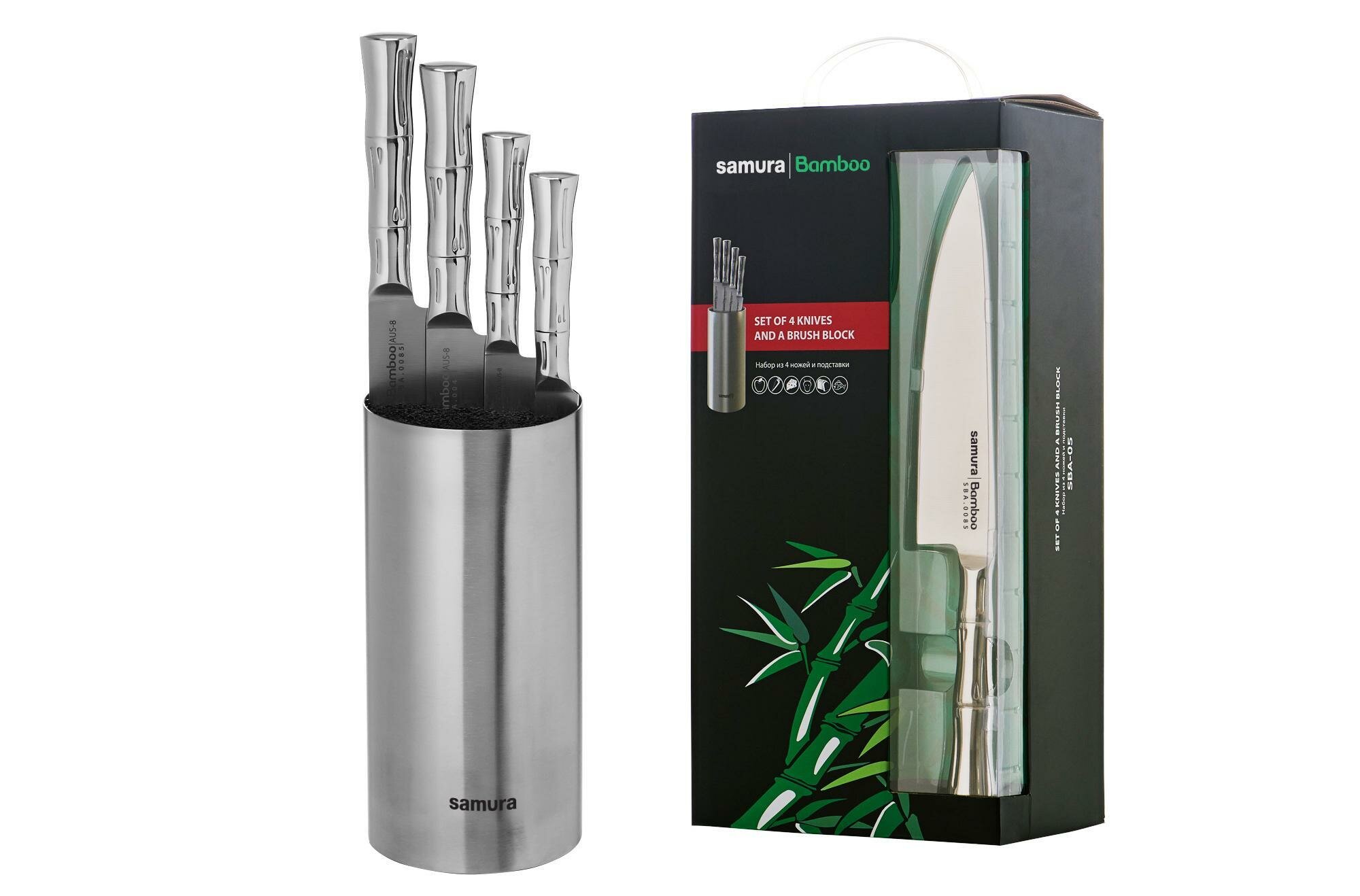Набор Samura Bamboo 4 ножа с подставкой серебристый