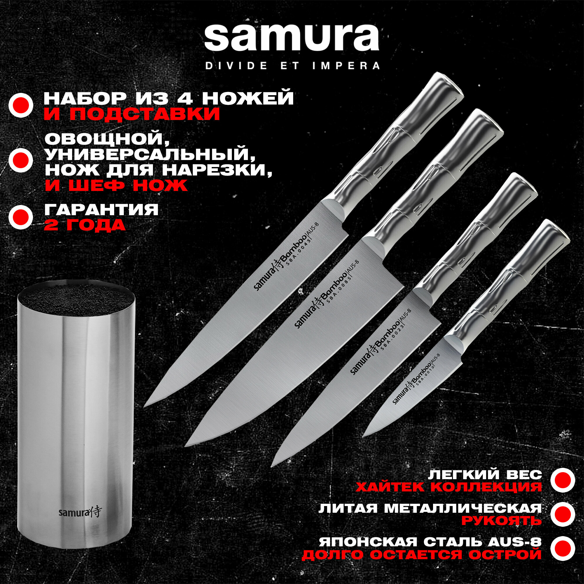 Купить SBA-05/K набор из 4-Х кухонных ножей И подставки SAMURA BAMBOO