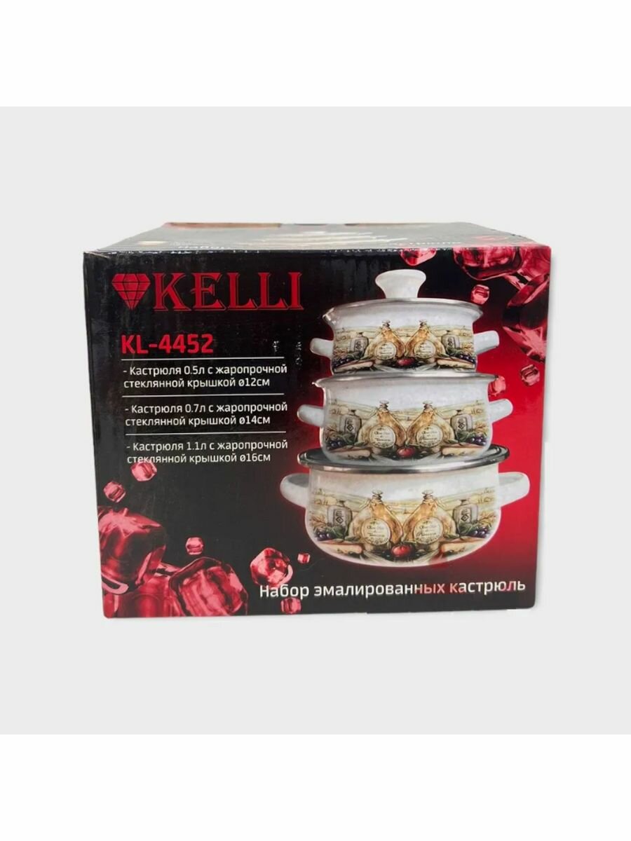 Набор посуды Kelli KL-4452 Эмаль 6 предметов 0,5л 0,7л 1,1л