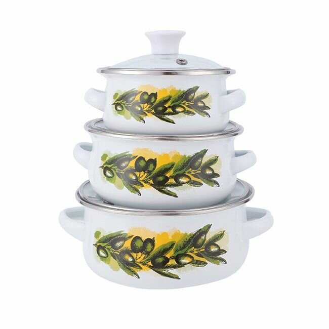 Набор посуды Kelli KL-4451 Эмаль Мини 6пр 0,5л 0,7л 1,1л (Лимоны)