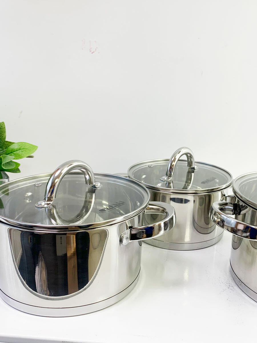 Набор кастрюль из нержавеющей стали с крышками Kelli 4294 для индукционных плит 6шт без антипригарного покрытия