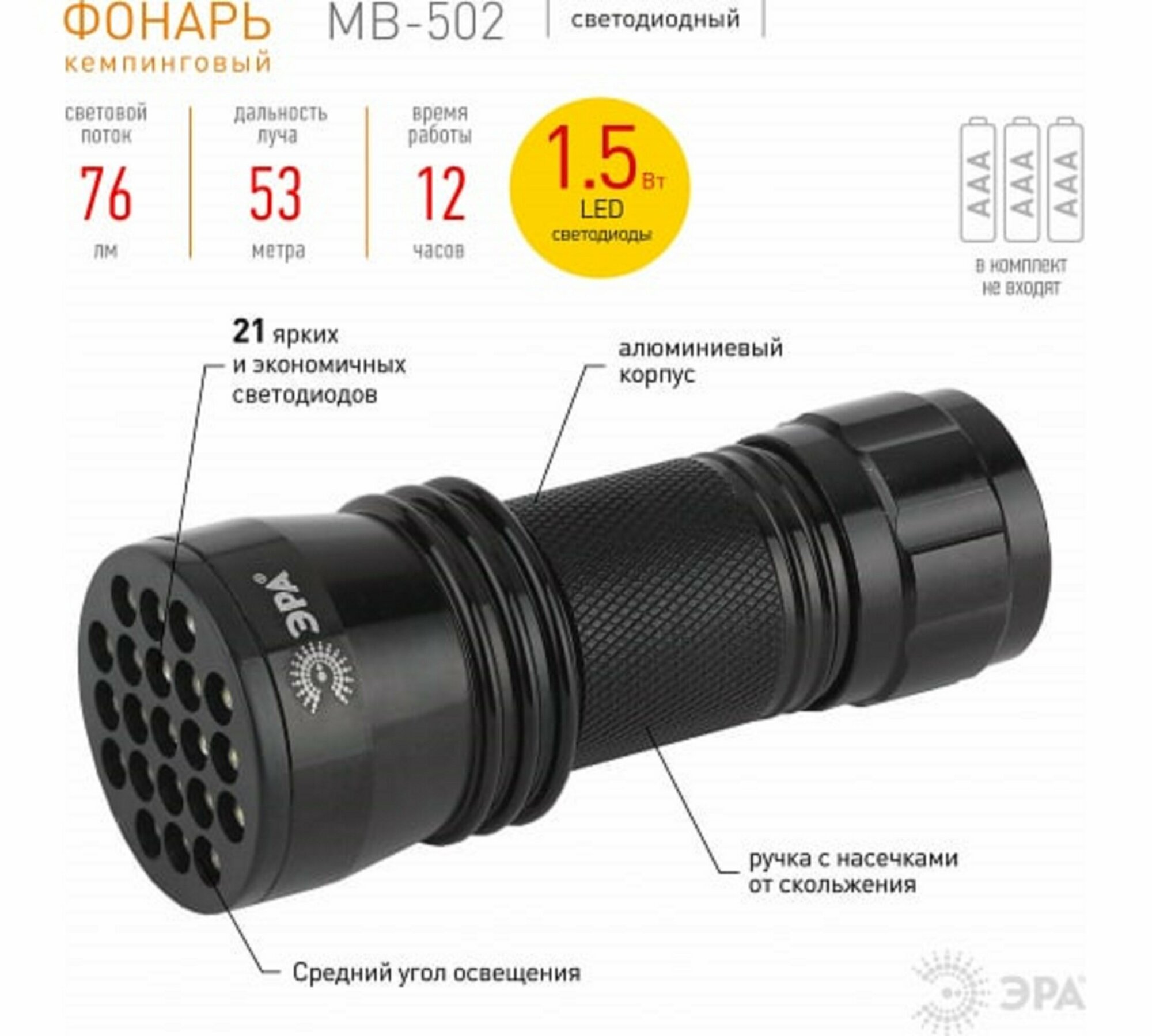 Типы/Уличное освещение/Фонарики ЭРА Ручной светодиодный фонарь ЭРА от батареек 76 лм MB-502 Б0030194